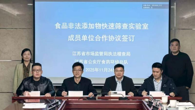 会上,举行了“食品非法添加物快速筛查联合实验室”合作协议签订仪式,标志着由省市场监管局执法稽查局、省公安厅环食药侦总队牵头、省内多家权威科研和检测机构共同组建的食品中化合物非法添加快速筛查平台正式运行。该平台将有效整合多方技术资源,提升全省食品中非法添加化合物的监管执法能力,有力维护安全放心的食品消费环境。