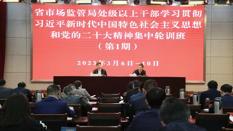 3月6日,省市场监管局处级以上干部学习贯彻习近平新时代中国特色社会主义思想和党的二十大精神集中轮训班开班。受全国人大代表,省局局长、党组书记沈海斌委托,副局长、党组成员陈琪宏出席开班式并作动员讲话,强调要认真学习领会习近平总书记参加十四届全国人大一次会议江苏代表团审议时的重要讲话精神,深入学习贯彻党的二十大精神,更加深刻领悟“两个确立”的决定性意义,更加自觉做到“两个维护”,立足市场监管职能,敢为善为、用心用力,助力江苏高质量发展继续走在前列。二级巡视员冯兴汉主持开班式。